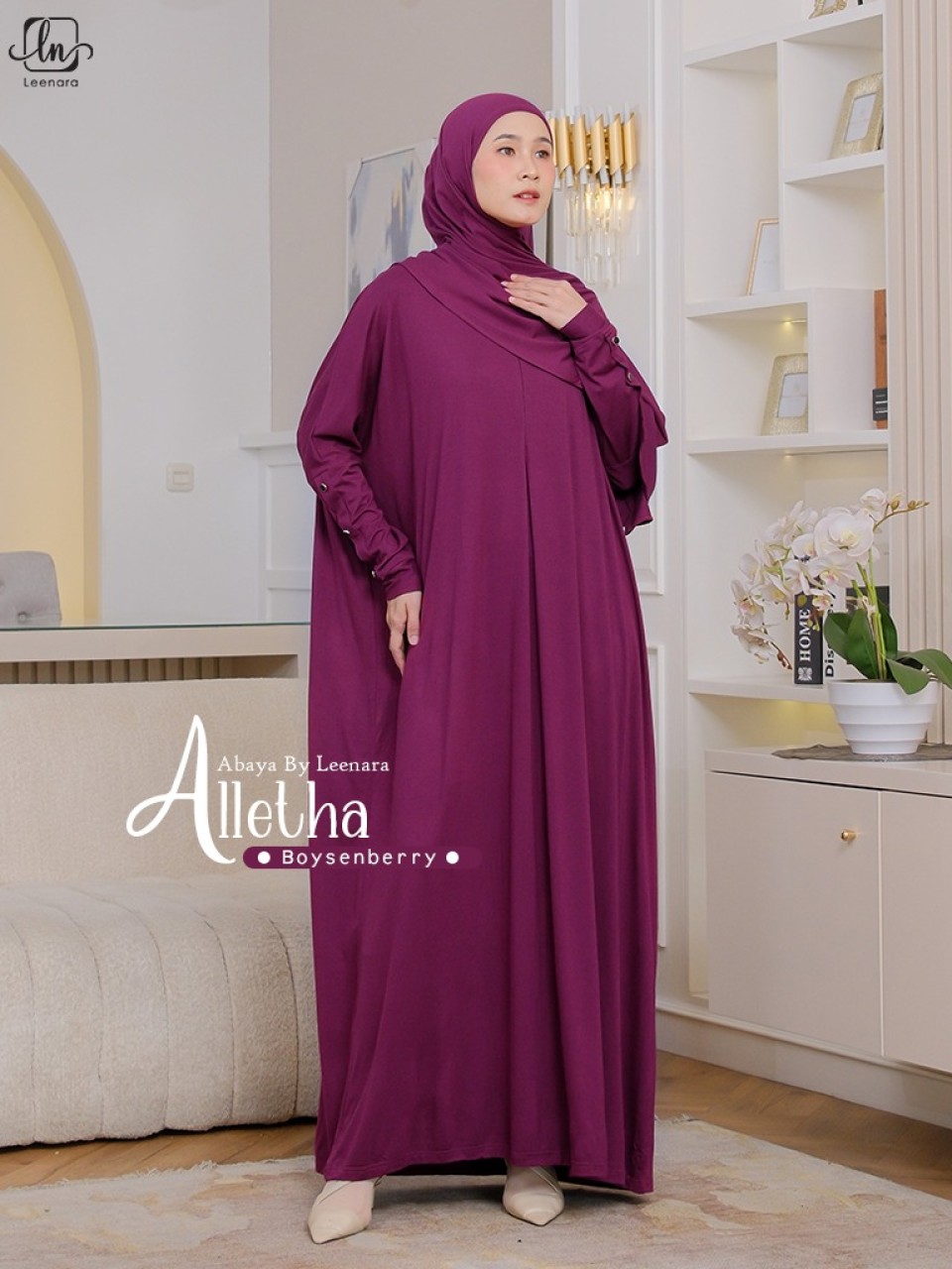 Tampil anggun dan nyaman seharian dengan _ALLETHA_, abaya pilihan terbaik dari Leenara.id yang menggabungkan kenyamanan maksimal dan anggun dalam satu desain.