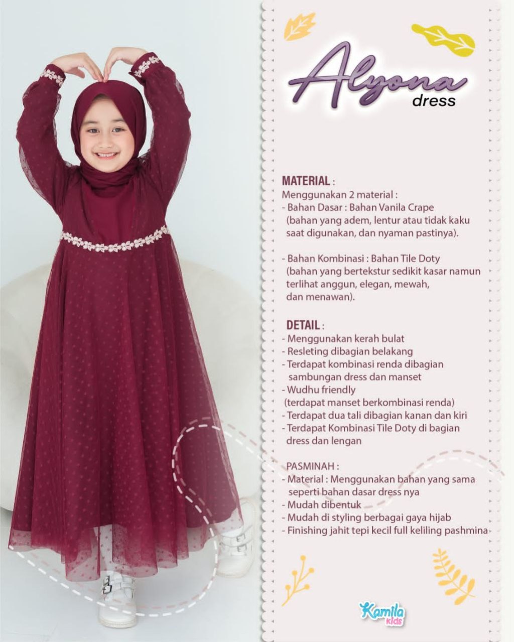 🌺PASMINAH : - Material : Menggunakan bahan yang sama seperti bahan dasar dress nya - Mudah dibentuk - Mudah di styling berbagai gaya hijab - Finishing jahit tepi kecil full keliling pashmina