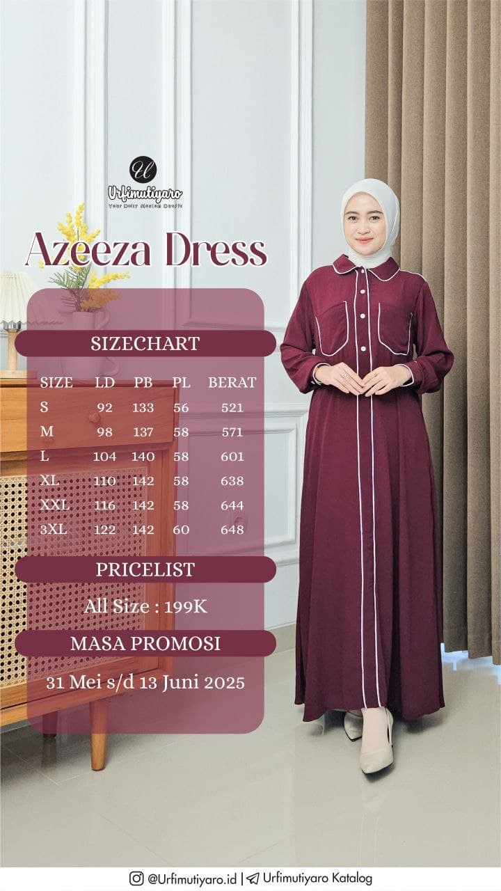 Azeeza Dress ini banyak dinanti, karena pakai bahan kualitas URFI, tapi harga dompet friendly.