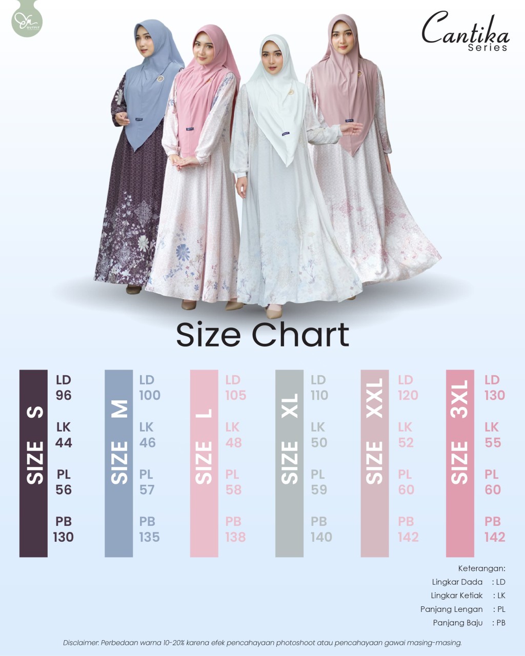 - Untuk warna pada gambar katalog dan aslinya bisa berbeda 10% karena pengaruh dari efek pencahayaan hp masing-masing ataupun saat proses photoshoot (warna asli sedikit lebih gelap dibanding katalog).