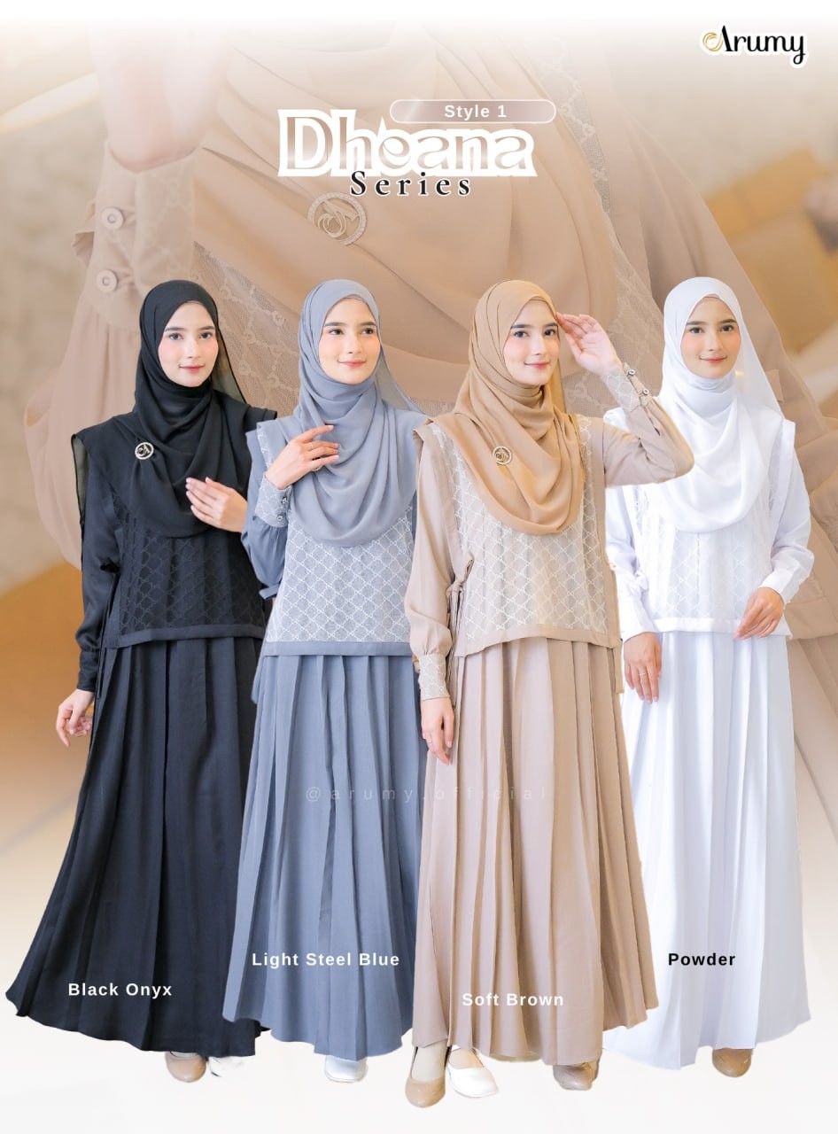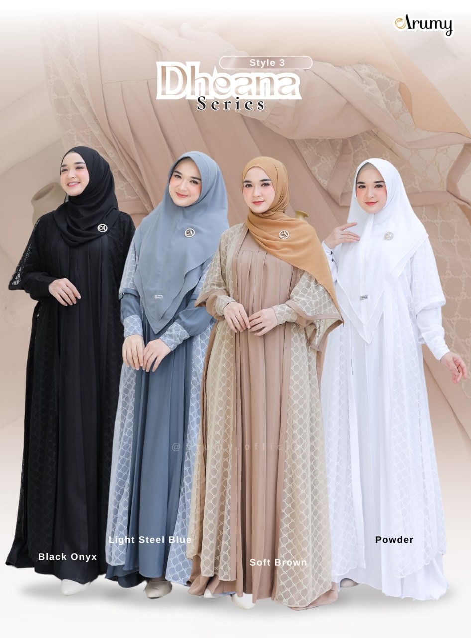 Dheana Series yang menggunakan material dasar Shakila premium yang super flowly, lembut dan tidak menerawang. Dilengkapi dengan outer Tile premium dengan 3 style dengan desain yang elegan dan tetap trendy. Dress set outer Dheana ini cocok untuk segala acara.