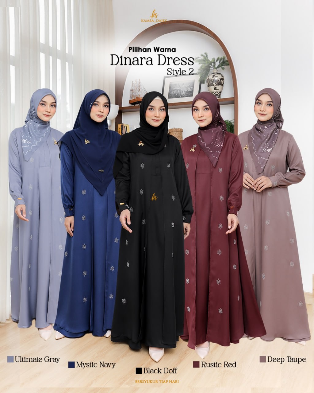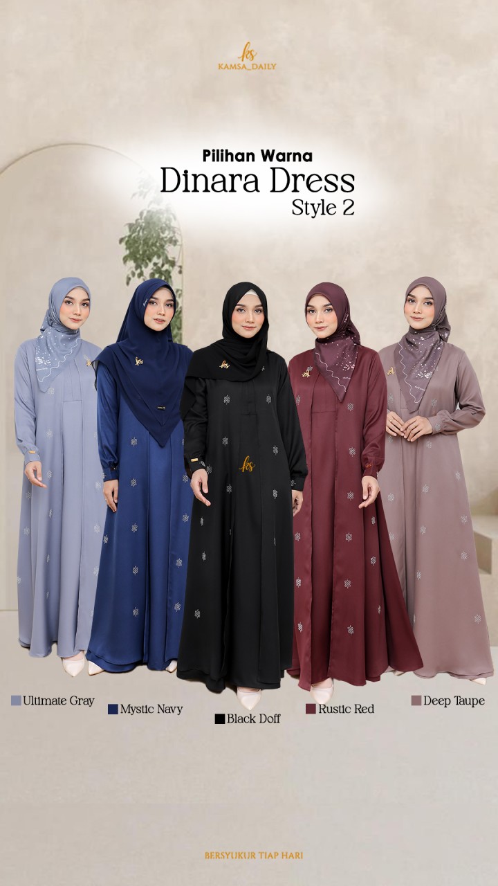 ❄️Dinara Dress hadir dengan 5 pilihan warna yang menarik 👇👇 🍁Black Doff 🍁Deep Taupe (Plum) 🍁Rustic Red (Maroon) 🍁Mystic Navy (Dongker) 🍁Ultimate Gray (Abu Keunguan)