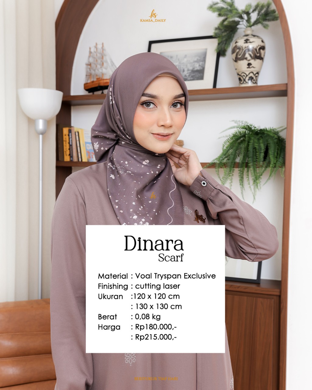 ❄️MATERIAL SCARF Dengan basic material Voal Tryspan Exclusive memiliki tekstur halus, lembut dan nyaman dipakai. Dinara Scarf juga mudah untuk dibentuk dan tidak mudah kusut. Perpaduan warna dan motif yang dikemas dengan sempurna membuat Dinara Scarf wajib mewarnai penampilanmu.