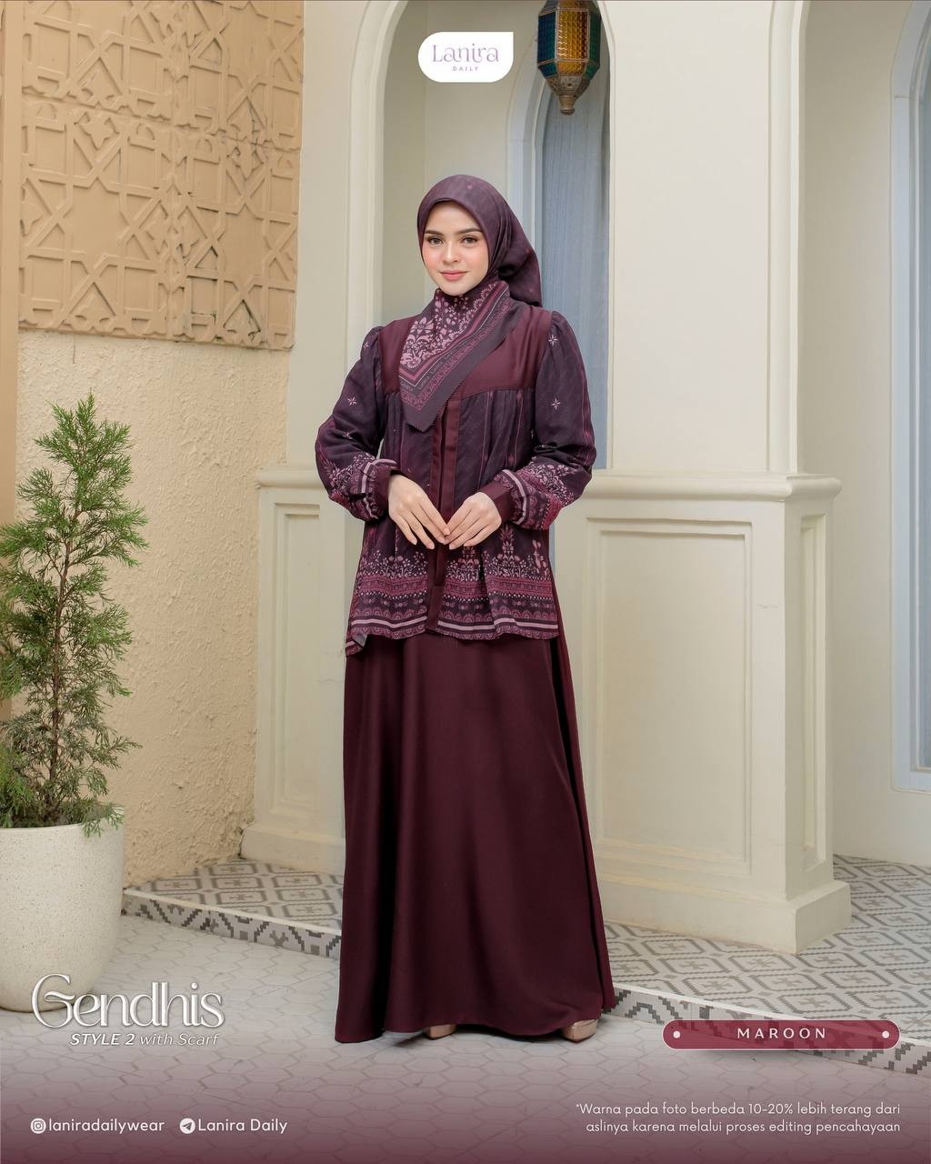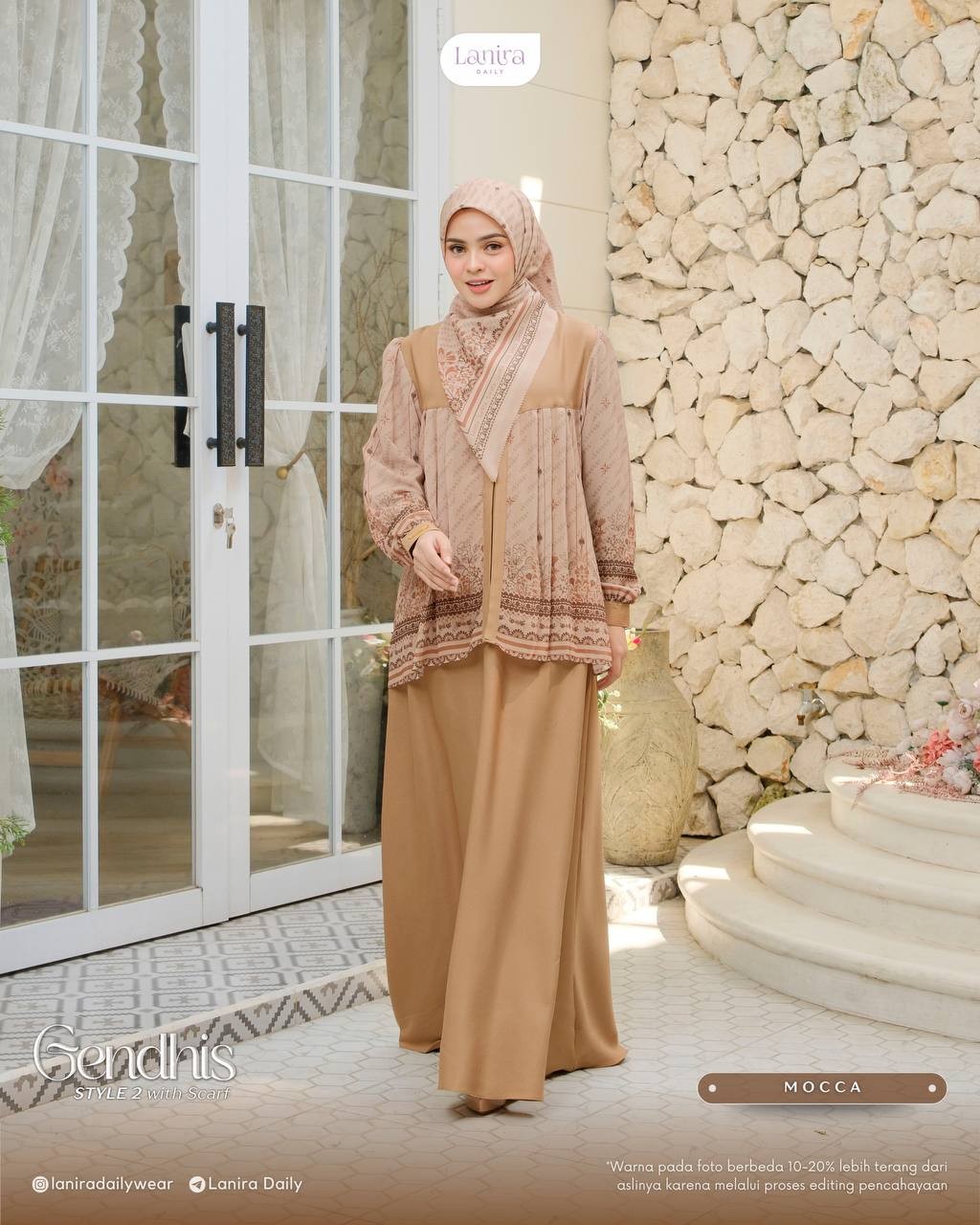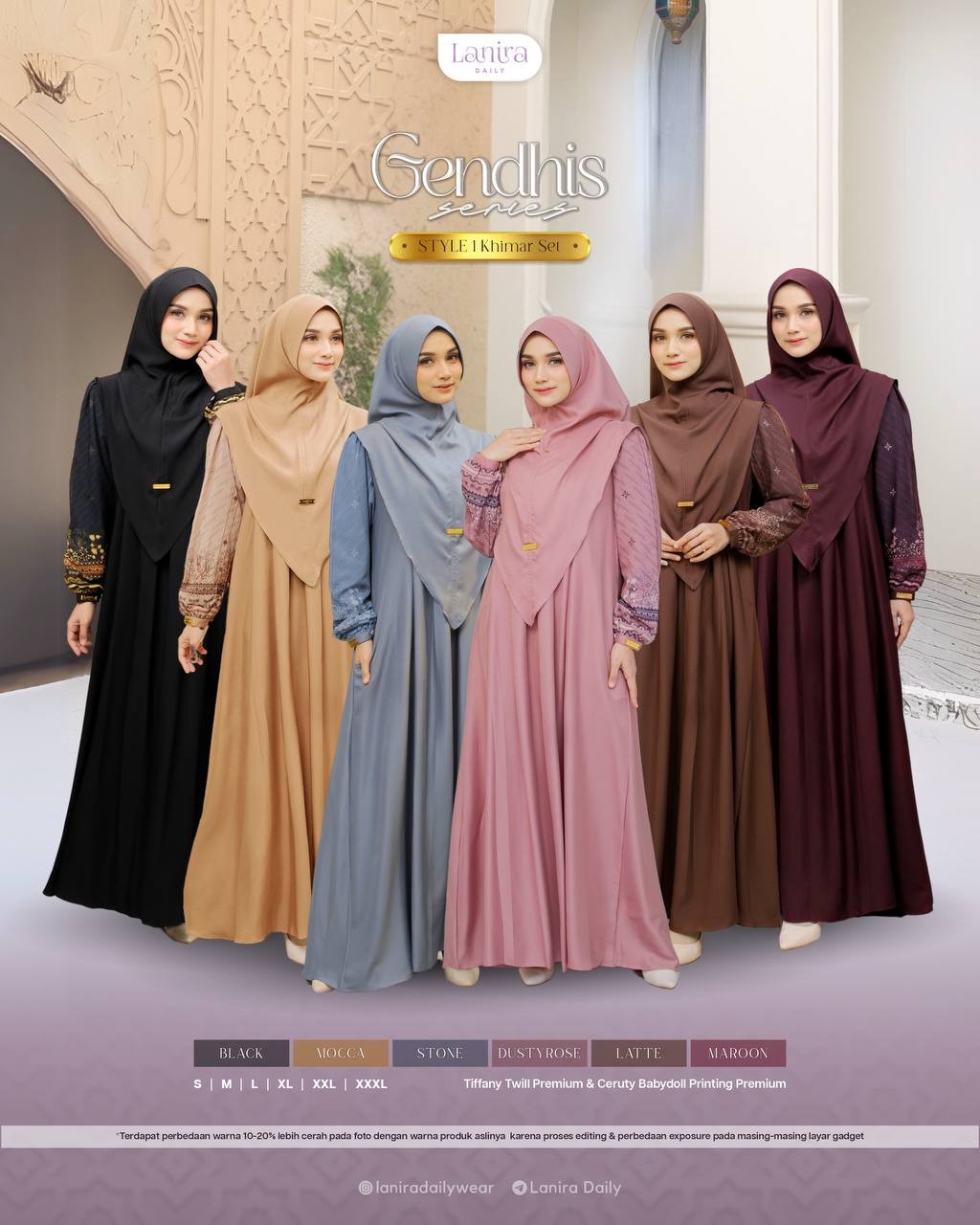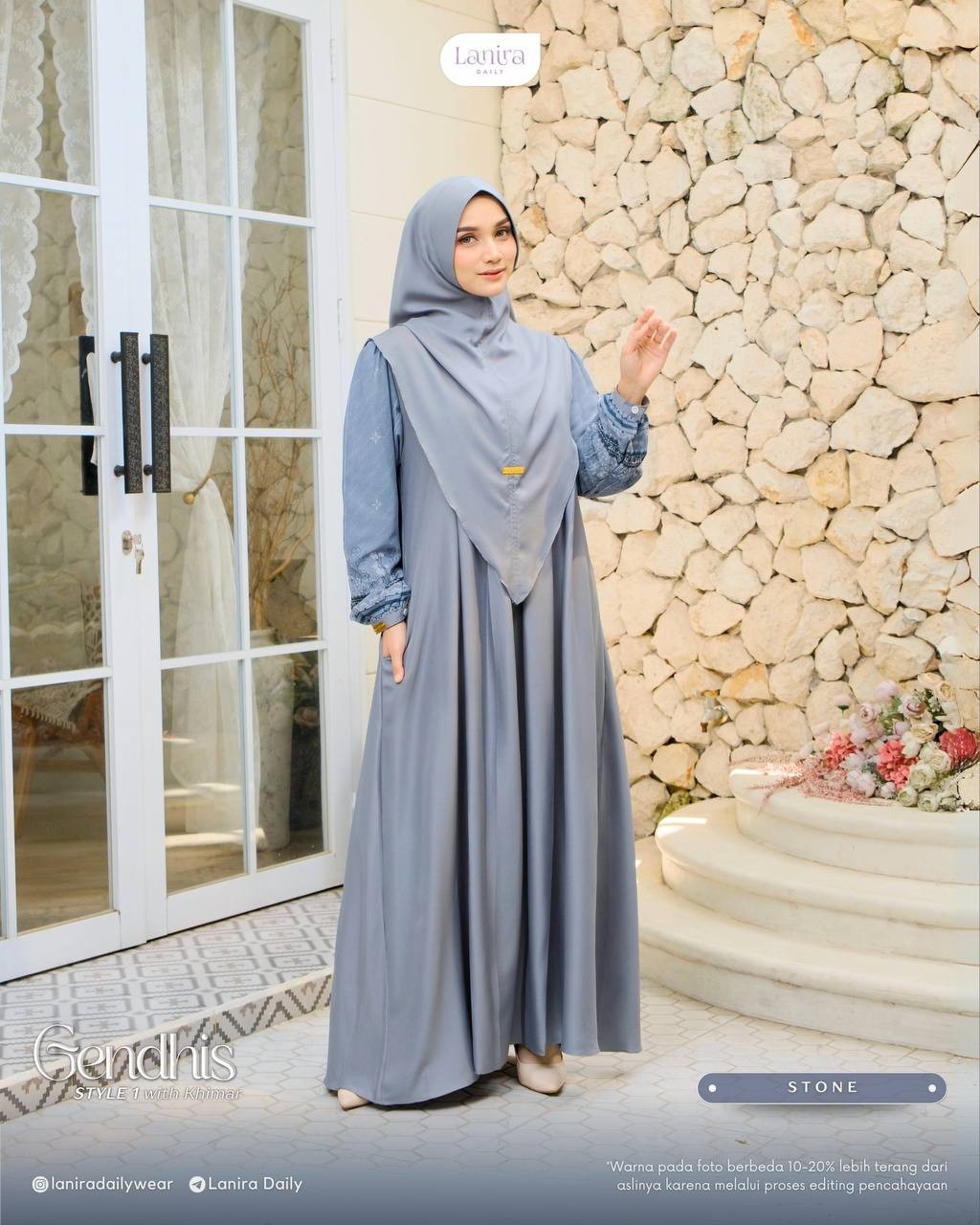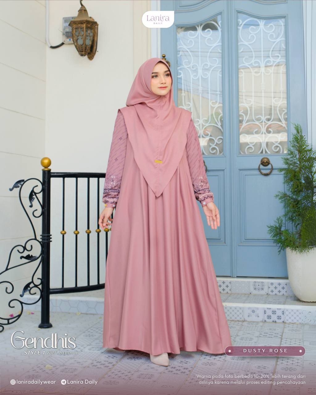 • terdapat logo plat lanira daily di bagian depan khimar