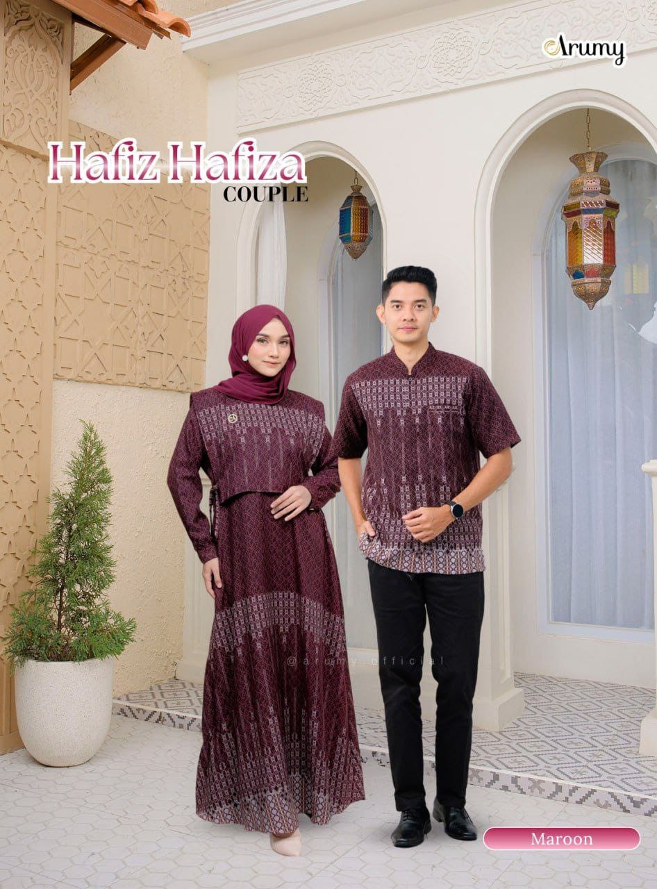 Hafiz Hafiza Couple diciptakan dengan design simpel klasik. Pada Dressnya terdapat aksen rompi yang dapat dilepas pasang sehingga memberikan kesan modern dan unik. Menggunakan bahan Toyobo Motif Premium dengan ciri khasnya yang adem, halus, tidak mudah kusut dan anti menerawang.