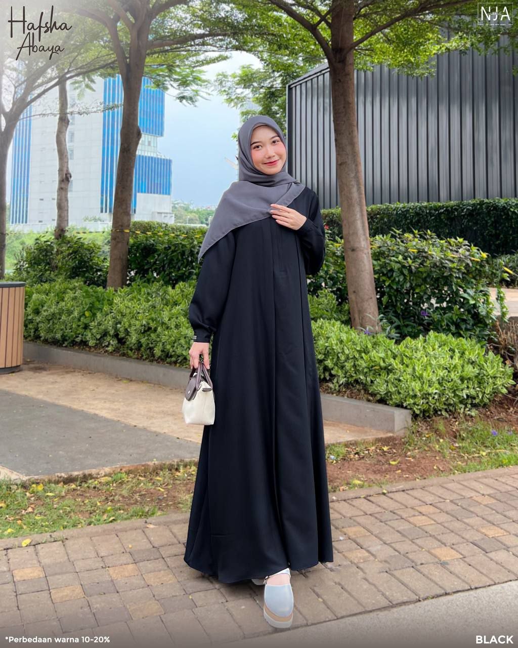 -Hafsha is coming back Yang kemarin ketinggalan order di batch sebelumnya, harap tenang...Sekarang kamu bisa order Hafsha Abaya di Batch 2 ini *HAFSHA ABAYA B2*Detail desain yg simple but super elegant, pilihan warna warni yg fresh dengan material apollo twill seperti Ameena & Lily Abaya yg sudah teruji super nyaman, lembut, jatuh dan dijamin harganya yang gak bikin dompet bergetarrrr..Walaupun ready setelah lebaran, tapi Hafsha Abaya ini really worth to wait pokoknya.. START FROM 149k AJA Siap bikin kamu kalap borong *TIMELINE PO*12 - 21 Feb 2025Max Transfer :50% 22 Feb 50% 30 April Estimasi Ready Akhir April (Jika ready lebih cepat, akan diinfokan kembali)*SPESIFIKASI HAFSHA ABAYA*•Material Apollo Twill, lembut, jatuh & super nyaman•Kerah shanghai •Resleting depan •Cutting Abaya tanpa sambungan badan•Terdapat 2 aksen vertikal cantik di bagian depan, membuat kesan lebih jenjang, elegant seperti memakai inner & outer•Saku kanan •Detail manset kancing satu dengan plat Exclusive NJA •Lebar bawah +/- 2,2 - 2,5m •Berat Produk :XS - XL : +/- 500gr2XL - 4XL : +/- 600gr•Tersedia 8 Pilihan Warna Abaya• Lavender• Navy• Broken White• Sage• Maroon• Bottle• Black• Mocca*SPESIFIKASI YUMMI SQUARE* •Bahan fine super lembut & mudah dibentuk•Tepi dijahit rapih •All size +/- 115x115cm •Berat produk 150gr •Tersedia 10 Pilihan warna Yummi• Yummi Dusty Purple (Abaya Lavender)• Yummi Blue Jeans (Abaya Navy)• Yummi Cream (Abaya BW)• Yummi Army (Abaya Sage)• Yummi Nude (Abaya Maroon)• Yummi Aqua (Abaya Bottle)• Yummi Shadow (Abaya Black)• Yummi Choco (Abaya Mocca)*Pricelist*• XS-S IDR 149k• M-L IDR IDR 159k• XL-2XL IDR 169k• 3XL-4XL IDR 189k• Yummi square IDR 39k