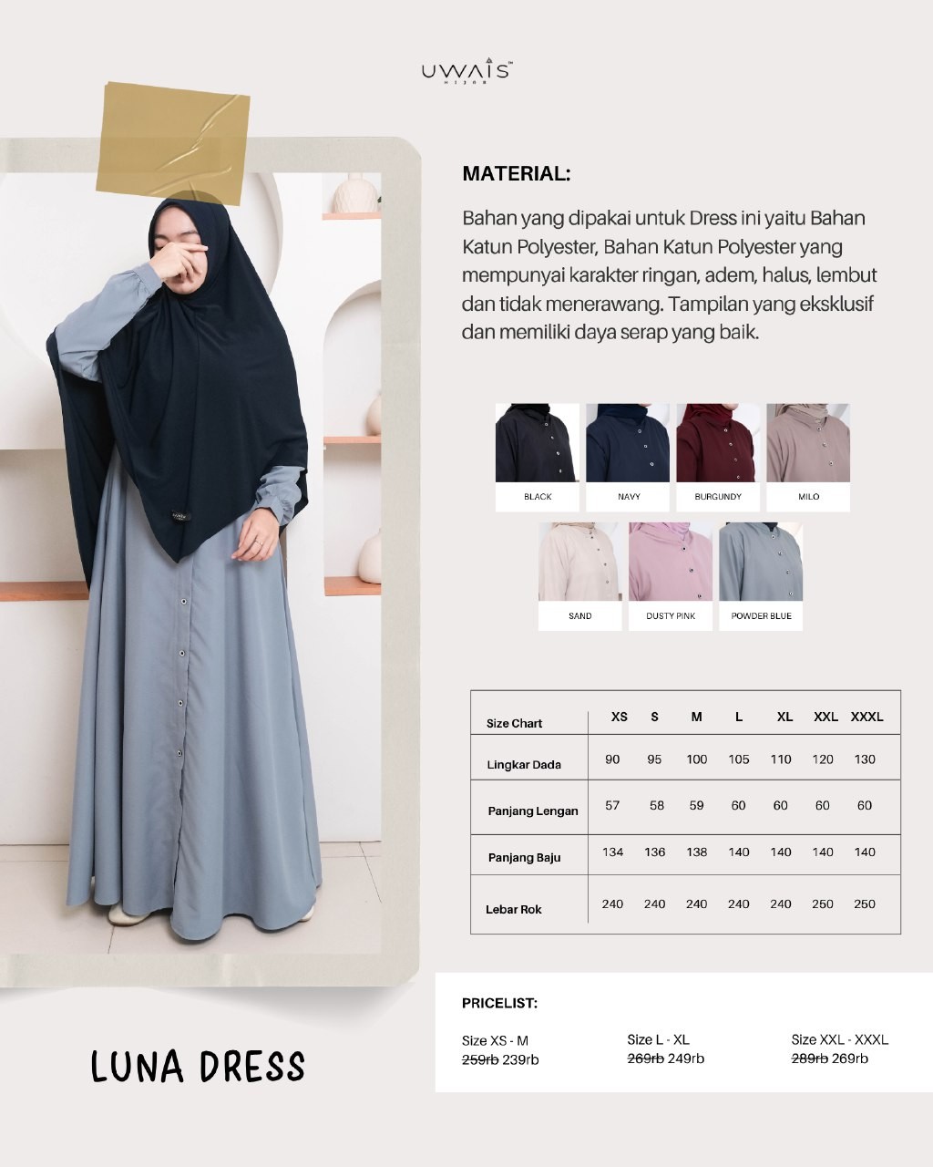 Tampil effortless dalam balutan kesederhanaan yang elegan. Luna Dress hadir sebagai pilihan daily dress yang timeless & simple, cocok untuk Bunda yang aktif namun tetap ingin tampil syarโi dengan stylish.