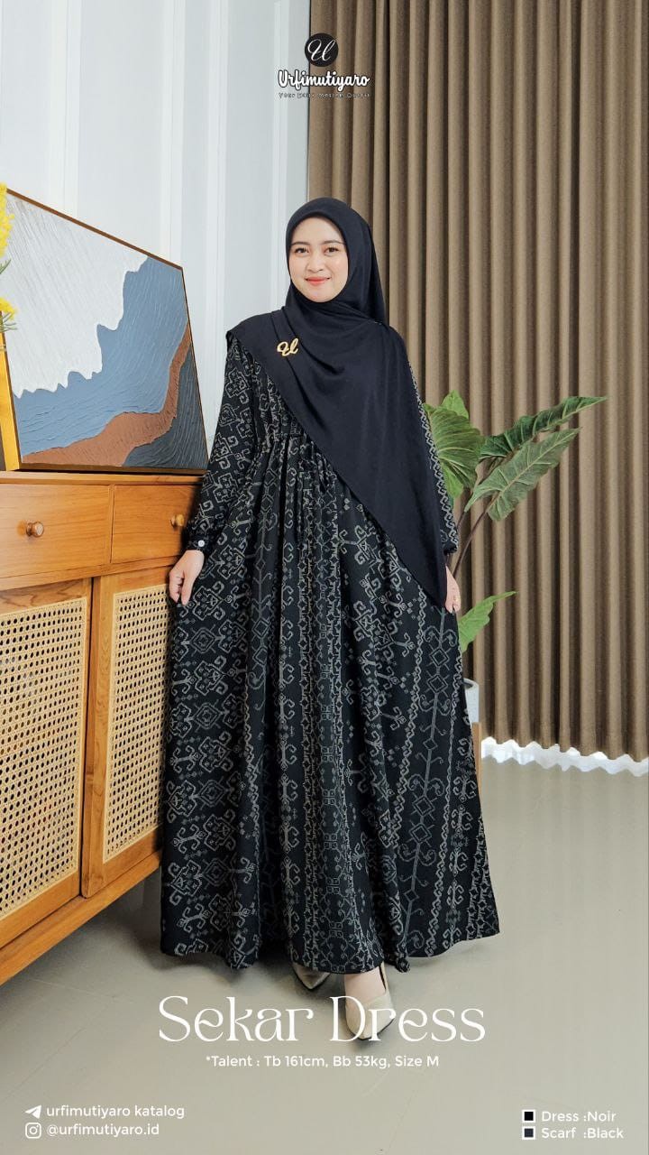 Sekar Dress distyling dengan Sekar Scarf yang menambah kesan anggun look Dress.
