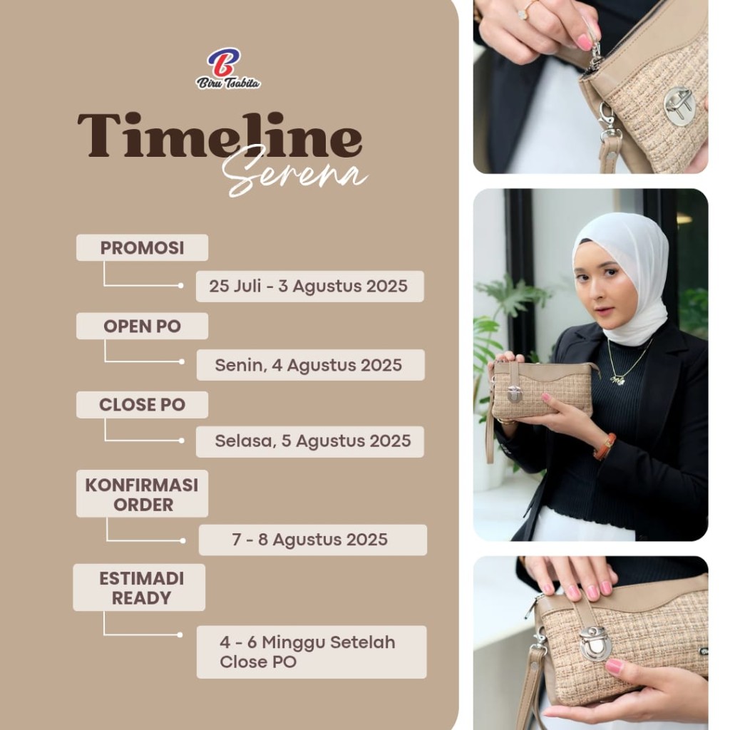 -✨ OPEN PRE ORDER✨ SPESIFIKASI SERENA BY BIRU TSABITA Ukuran : Panjang 20cmLebar 3 cmTinggi 11 cmBahan Osla x serut Berat ± 150 gram Detail : - Terdapat 1 resleting utama yang sudah dilengkapi zipper dan kunci sodok, sehingga lebih aman. - Dilengkapi 2 kantong utama dan 1 kantong tambahan dibagian tengah dompet. - Tersedia 1 kantong dibagian dalam tas yang sudah dilengkapi dengan resleting. - Muat banyak barang kecil harianmu, seperti : Handphone Uang kertas / koin Perkartu an Make up Kunci Powerbank Charger Dll PILIHAN WARNA : Kunyit Moka Olive Krem Hitam Wardah Pink HargaEcer 55.000