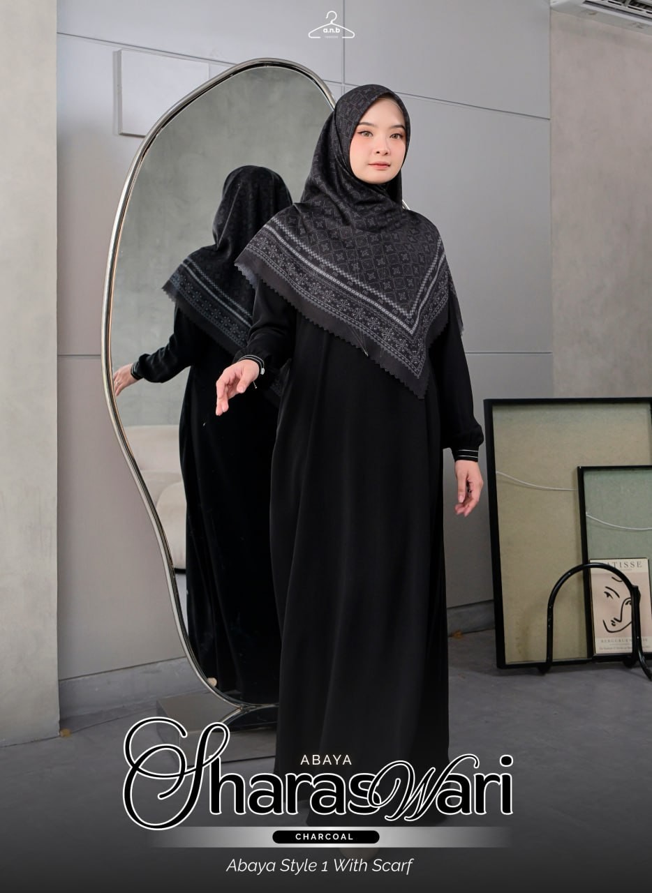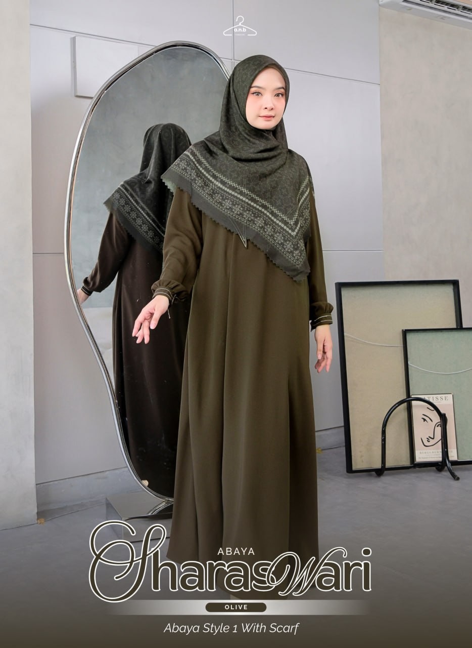 Setelah kemarin Viral artikel Maheswari abaya kini hadir lagi design abaya yang tidak kalah Exclusive _Sharaswari Abaya_ dengan embriodery logo ANB yang membuat looknya makin exclusive