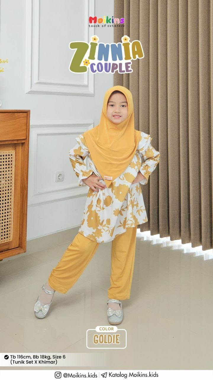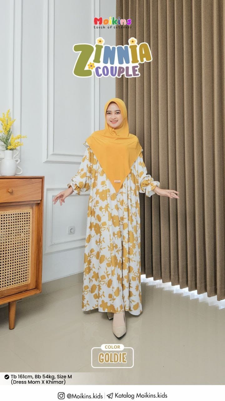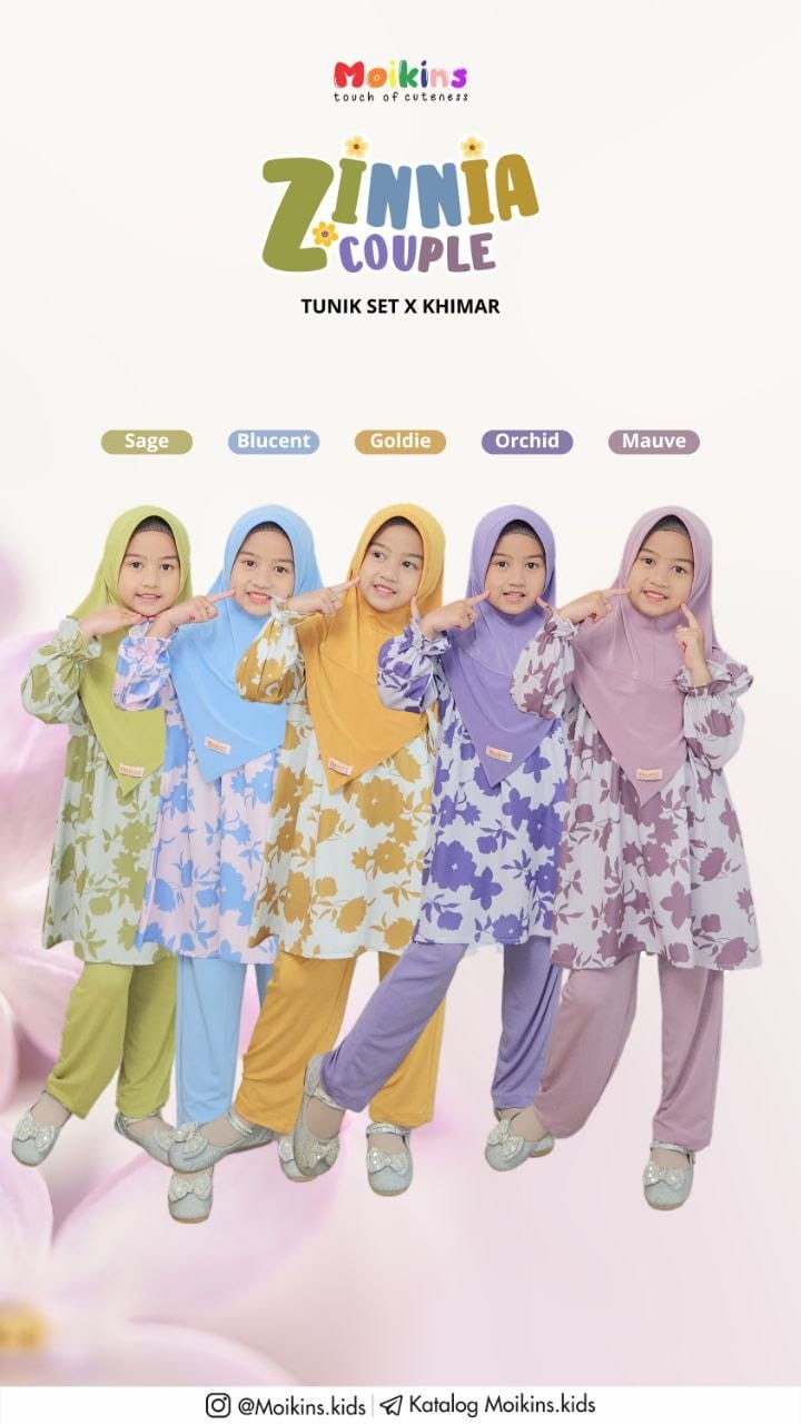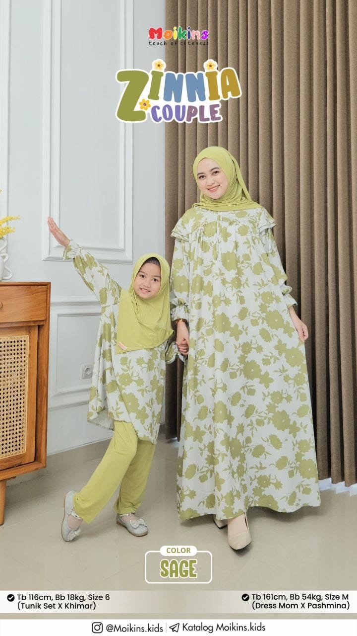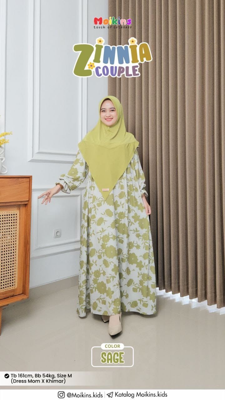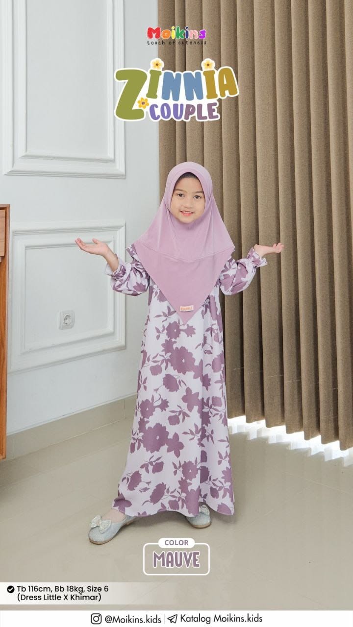 Zinnia Couple dipadukan dengan Zinnia khimar yang di design cantik dengan hardpet, cutting depan V dan belakang U, nyaman, praktis dan simple.