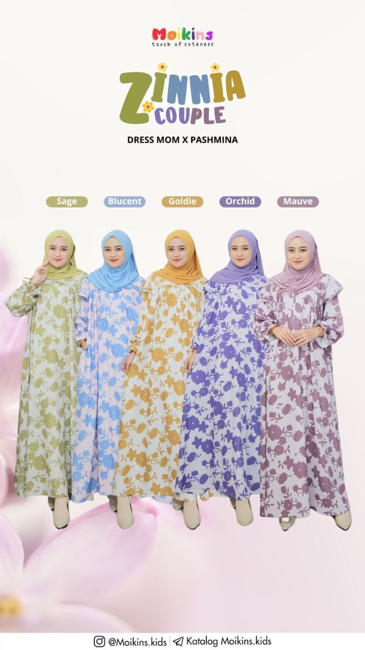 Selain dipairing dengan Khimar, Zinnia Couple juga dapat dipairingkan dengan pashmina dengan warna senada yang menambah anggun look moms.