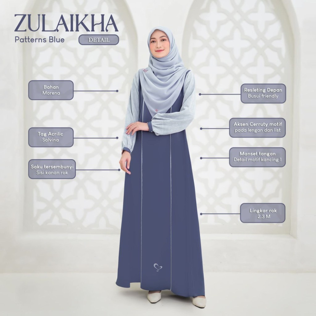 ? Spesifikasi Zulaikha Dress : - Bahan dasar Morena dengan teksture lembut, jatuh, dan tidak menerawang - Aksen Cerruty motif pada lengan dan list bagian depan rok menjadi daya tarik dari Zulaikha Dress ini. - Resleting pada bagian depan, busui friendly - Manset tangan kancing 1 dengan detail motif pada kancing menjadi hal yang menarik, serta wudhu friendly - Terdapat saku tersembunyi di bagian sisi kanan rok - Lingkar rok 2,3 meter - ?Tersedia size XS, S, M, L, XL, XXL. - Terdapat 4 pilihan warna : 1. Patterns Blue 2. Pink Blush 3. Mint Green 4. Rich Black
